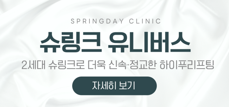 시술 후 주의사항 1. 슈링크 시술 후에는 피부 보호를 위해 사우나나 흡연, 음주 등 피부를 자극할 수 있는 일을 피해야 하며, 외출 시 자외선 차단제를 바르는 게 좋습니다. 2. 시술 후 2~3일간은 집에서 안정될 때까지 휴식을 취하는 게 좋으며, 야채를 섭취하면 피부 회복과 콜라겐 생성에 도움이 되므로 비타민이 풍부한 야채를 드시는 것을 권해드립니다. |