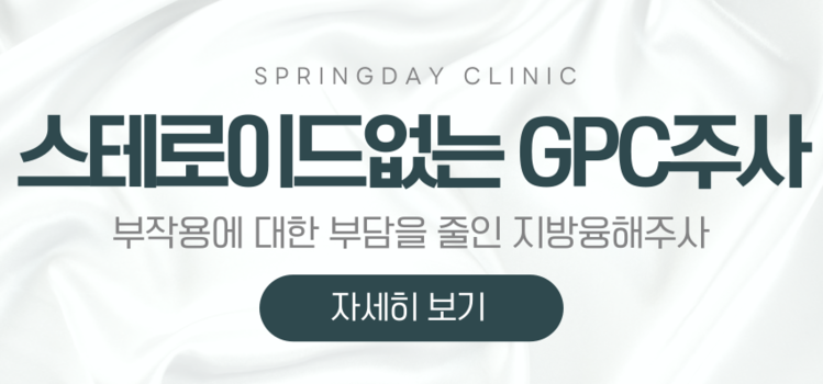 장점 1. 짧은 시술 시간으로 총 10분 내외입니다. 2. 얼굴에 불필요한 지방을 분해해 도움을 줄 수 있으며, 얼굴라인 개선 3. 스테로이드가 들어있지 않아 파임현상이나,지방이 울퉁불퉁 빠지는 현상,부정출혈 등에 부작용 없이 얼굴윤곽 라인정리에만 도움이 되어, 얼굴 라인개선에 효과적 4. 적은양, 고농도로 일상생활에 불편함이 적으면서 효과 UP (주사 시술의 효과는 몇 cc 인지보다는, 유효성분의 함량이 중요합니다.) |
